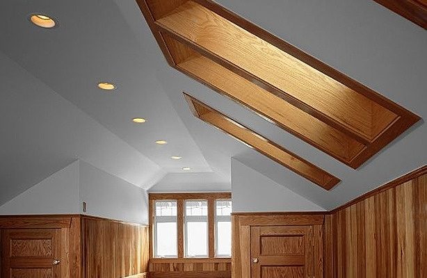 - Варианты применения дерева в интерьере с натяжными потолками