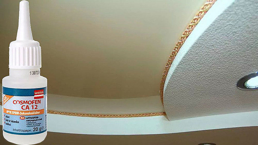 | Специальный клей для ПВХ пленки или ткани | Выбирайте клей, предназначенный именно для вашего типа натяжного потолка. |
