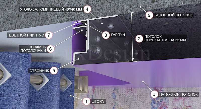 | Натяжной потолок | Карниз | Крепление | Установка | Инструкция |