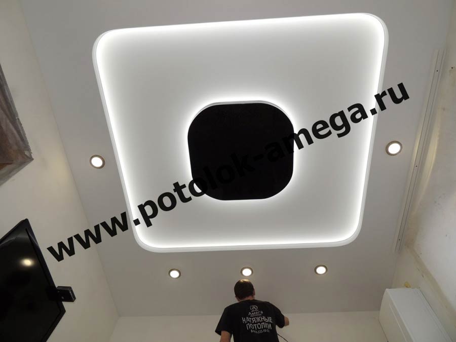 - Подсветка матовых натяжных потолков в стиле хай-тек