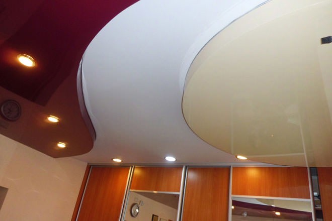 - Многоуровневый потолок с нишами для встроенных светильников.