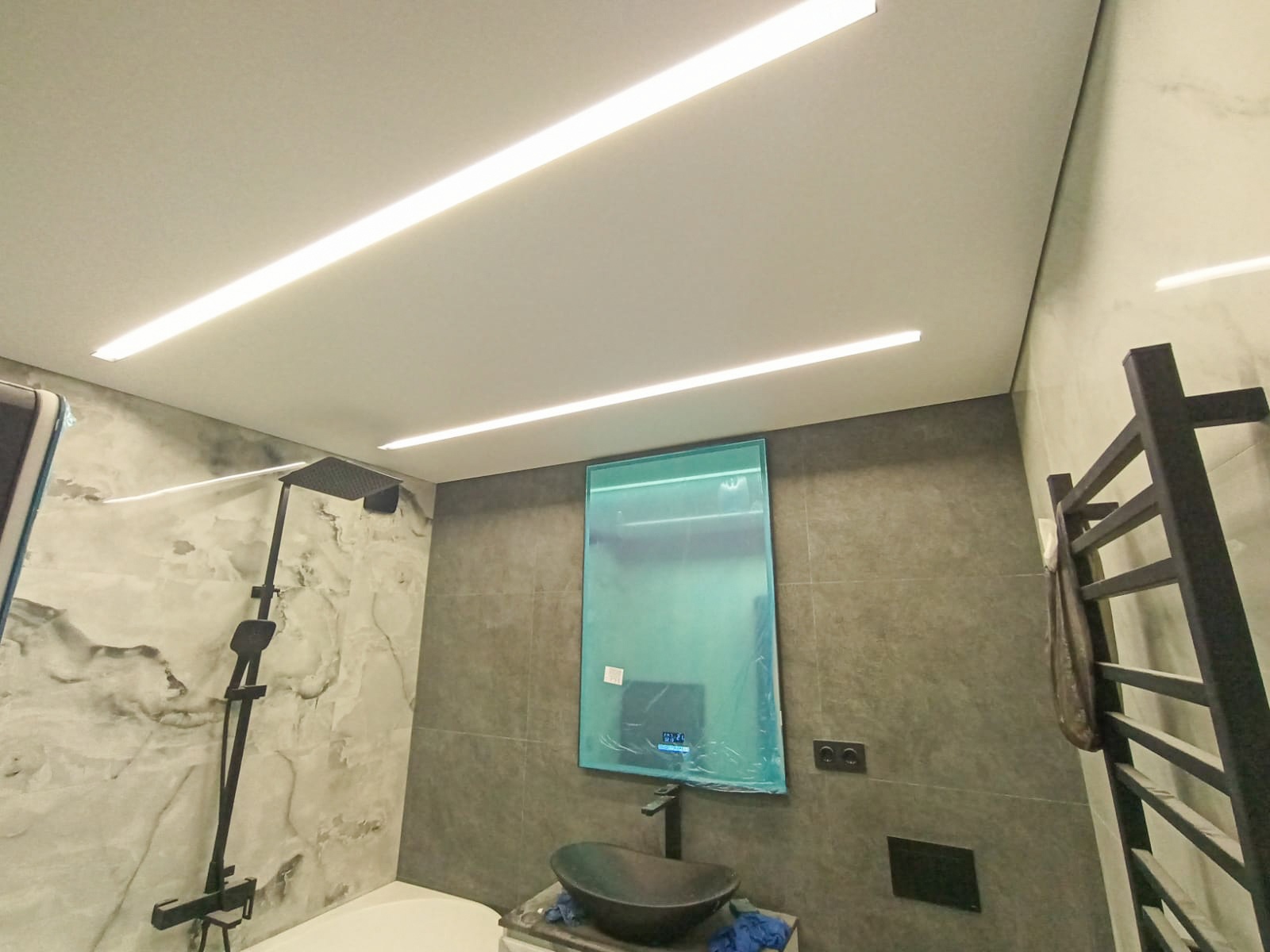 Процесс монтажа натяжного потолка в ванной комнате включает несколько этапов⁚