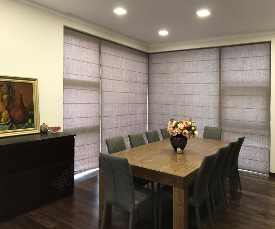 - Сочетание натяжных потолков и римских штор⁚ идеальный дуэт