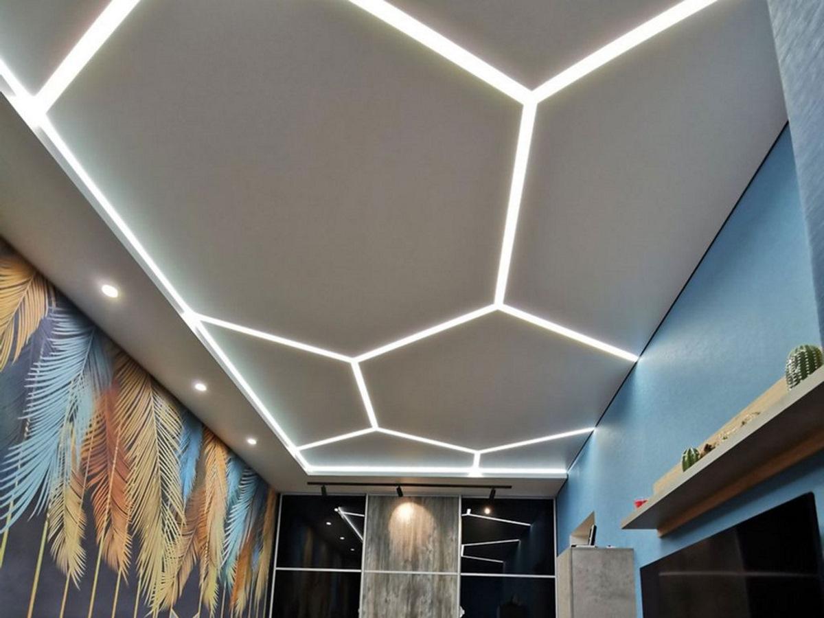 | Натяжные потолки | Световые линии | Дизайн интерьера | LED освещение | Зонирование пространства |
