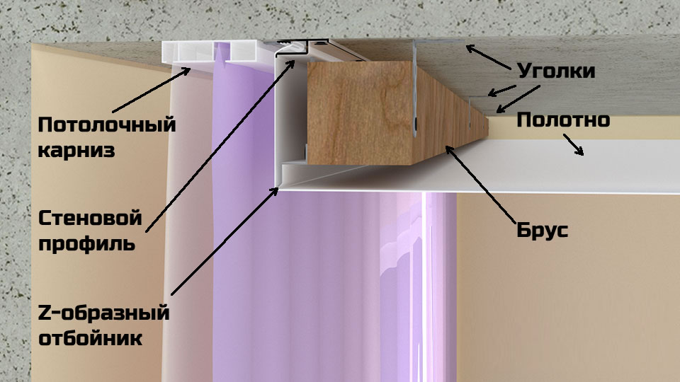 | Натяжной потолок | Карниз | Шторы | Расчет длины | Крепление |