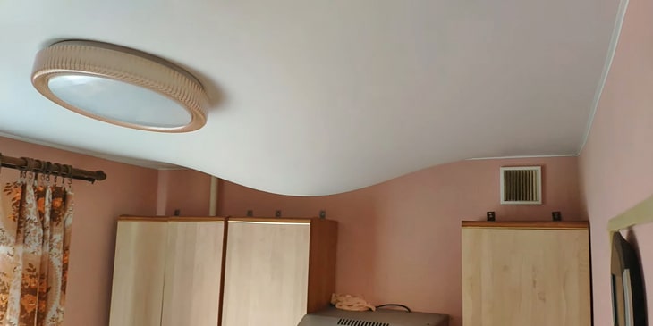Еще одна частая причина – некачественный монтаж. Если полотно было неправильно натянуто или зафиксировано, провисание может появиться уже вскоре после установки; Недостаточное натяжение или неравномерное распределение нагрузки на багеты могут привести к деформации.
