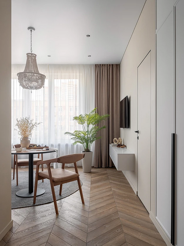 Тренд на минимализм продолжает оставаться на пике популярности. Гладкие матовые поверхности светлых оттенков, оттенков белого, бежевого, серого – это выбор тех, кто ценит простоту и функциональность. Геометрические фигуры, такие как круги, квадраты, треугольники, используются для зонирования пространства или создания акцентных элементов. Иногда достаточно одной четкой линии или контрастного цветового пятна, чтобы оживить монохромный интерьер.