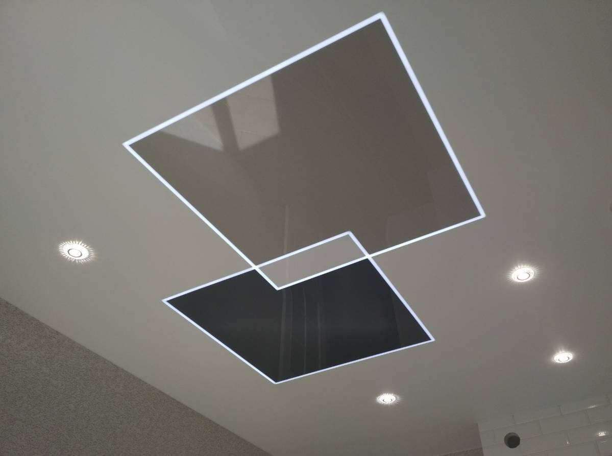 - Создание визуальных эффектов с помощью комбинирования цветов и фактур натяжных потолков