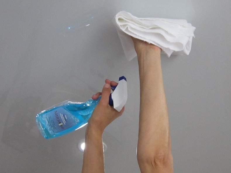 При сильных загрязнениях можно использовать специальные средства для чистки натяжных потолков, которые продаются в строительных магазинах. Перед применением обязательно ознакомьтесь с инструкцией и проведите тест на незаметном участке потолка.