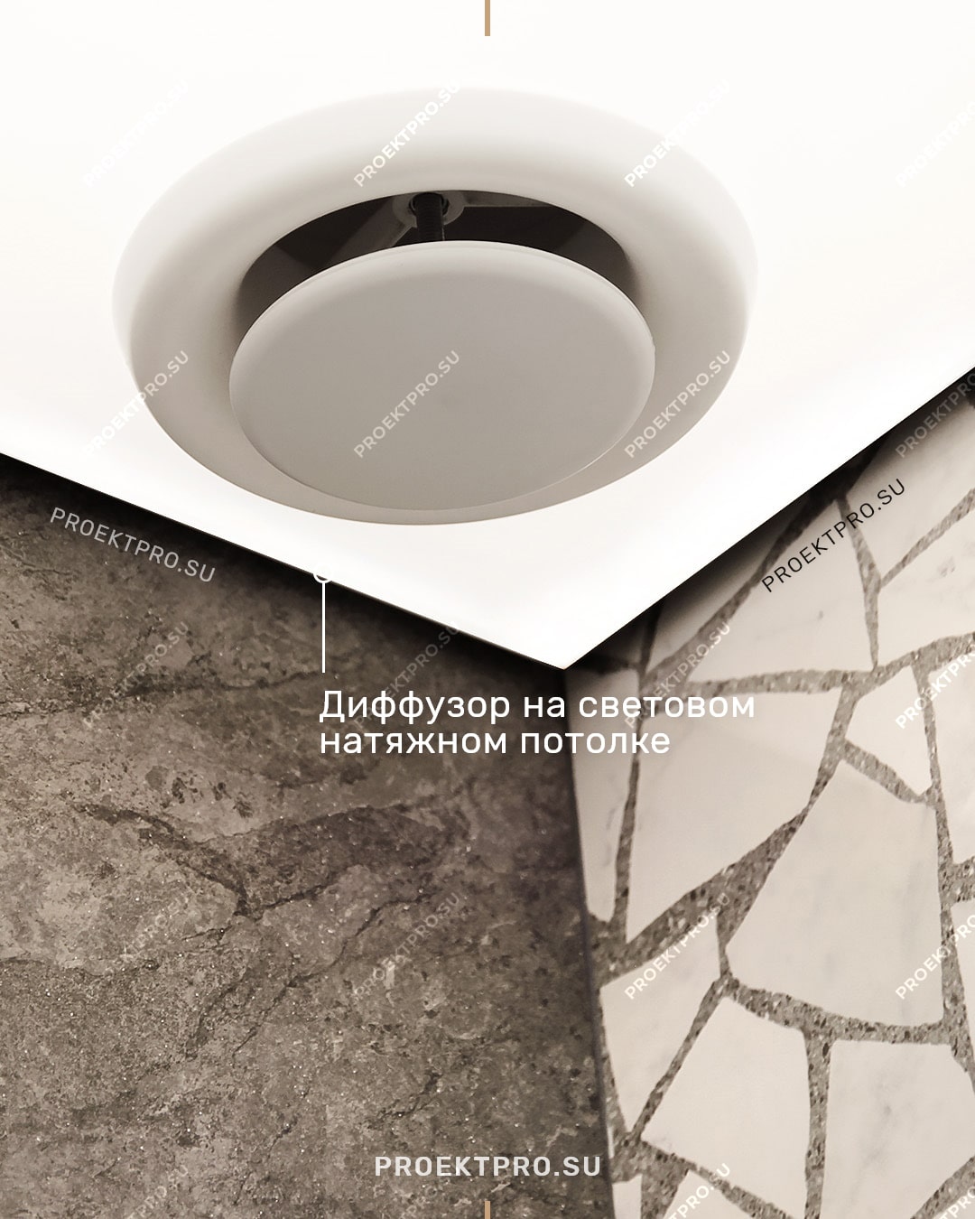 Чтобы избежать вышеописанных проблем, необходимо уделить особое внимание проектированию и установке системы вентиляции. Важно учитывать особенности помещения, его площадь, назначение и уровень влажности. При установке натяжных потолков необходимо предусмотреть вентиляционные отверстия, которые обеспечат достаточный воздухообмен. Эти отверстия могут быть выполнены в виде специальных диффузоров или решетки, которые встраиваются в натяжное полотно или располагаются в зазоре между полотном и базовым потолком.