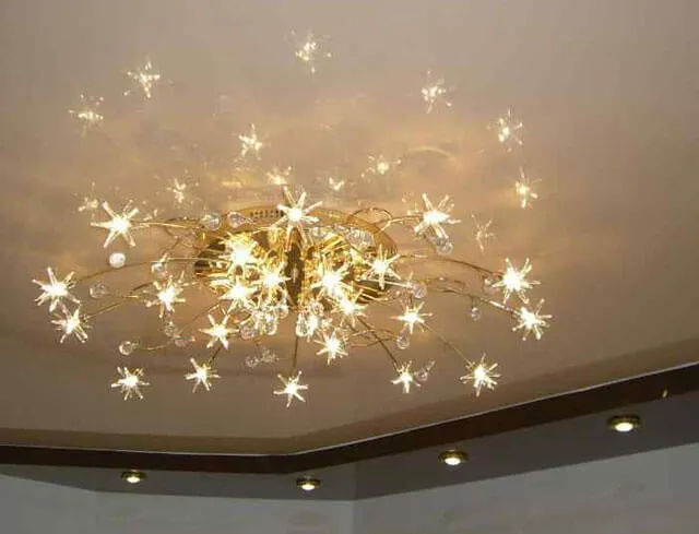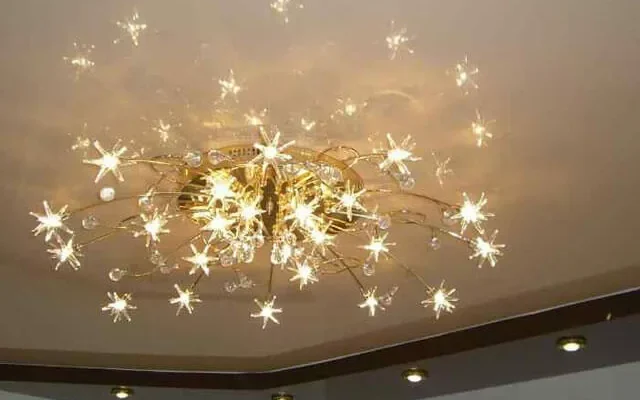 Важно также учесть конструктивные особенности натяжного потолка. Если у вас многоуровневый потолок, люстра должна гармонично вписываться в общую композицию. Для сложных конструкций лучше выбирать люстры с компактными размерами, чтобы избежать перегруженности пространства.